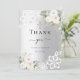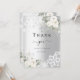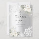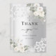 Un carte de remerciements de baptême moderne et élégant, neutre pour les hommes et les femmes. Un arrière - plan faux argenté. Décoré de roses blanches, fleurs florales, dentelle et une petite croix. Retour : Modèle pour une note de remerciement et nom.