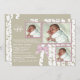 Invitation de baptême de bouleau accentué en rose avec la place pour trois photos de votre bébé et beaucoup de place pour le texte sur le dos pour le texte supplémentaire. Un joli arc rose et des bouleaux blancs en papier confèrent également une faire-part de naissance douce.