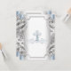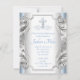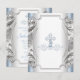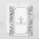 Cartons d'invitation baptême croix argent et bleu bébé avec une belle croix bleu bébé sur un fond élégant bleu et argent. Ces invitations de baptême et de christening bleu et argent sont facilement personnalisables pour votre événement en ajoutant simplement vos coordonnées.