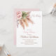 Invitation Baptême Bébé Rose Poussiéreux Élégant Bohème Herbe
