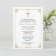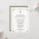 Bienvenue à votre enfant dans la foi avec cette exquise invitation au baptême avec un portrait révérent de la Bienheureuse Vierge Marie en prière. L'oeuvre présente Notre-Dame dans son manteau bleu traditionnel orné d'étoiles dorées et d'une robe rouge corail, ses mains jointes dans une prière paisible sous un halo doré radieux. Le portrait est magnifiquement encadré par un symbole marial doré orné et une bordure géométrique décorative avec des motifs étoiles subtils, créant une atmosphère d'élégance sacrée. À la base de l'image, des roses vibrants dans les tons coralliens, jaunes et pêche aux fleurs blanches délicates apportent une touche de beauté naturelle symbolisant la pureté et la grâce de Marie. Ce design intemporel combine l'imagerie catholique traditionnelle avec des couleurs chaleureuses et accueillantes qui capturent parfaitement la solennité et la joie du sacrement baptismal. Les détails d'or suggèrent la lumière divine et la bénédiction qui sont données à votre enfant lorsqu'il entre dans l'Eglise. Personnalisez avec le nom de votre enfant, la date de baptême, l'heure, l'emplacement et les détails de la réception pour un souvenir significatif qui célèbre cette étape importante dans le voyage spirituel de votre enfant.