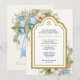 Doté d'une belle invitation de baptême catholique faite sur coutume avec la Sainte Mère tenant Jésus dans ses bras sur un arc bleu avec un spray floral. Tout le texte et les polices peuvent être modifiés.
