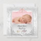 Invitation Baptême Christening de Bébé Fille Blanc Rose