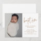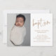 Cette invitation de baptême de bébé photo moderne comporte un art de baptême de style calligraphie manuscrite qui est déplaçable et dont vous pouvez facilement changer la couleur, une photo verticale et un texte modifiable. Cliquez sur le bouton modifier pour personnaliser ce design.