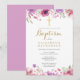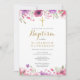 Invitation Baptême Christening Élégant Rose Fleur Rose