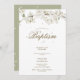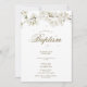 Un baptême élégant ou une invitation à baptiser avec des fleurs blanches délicates encadrant votre baptême ou des détails de baptême dans une élégante typographie dorée. Conçu par Thisisnotme©