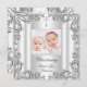 Baptême Christening Fille Garçon Jumeaux Argent Blanc Floral Métal Look Image Joli Classe Modèle