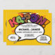 Une bande dessinée amusante, cool et tendance a inspiré le baptême, invitation à baptiser qui met le wham, zap, pow dans l'événement de célébration de votre super-héros. Le verso comporte un motif de pois de bande dessinée correspondant et une bulle de discours pour plus de détails sur l'événement et l'adresse. Conçu par Thisisnotme©