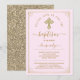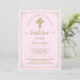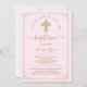 Baptême classique rose et or invitations avec belle croix d'or et arrière - plan frontière or. Cette invitation au baptême en or rose est facilement customisée pour votre événement en ajoutant vos détails. Vous pouvez également modifier la couleur du texte et de l'arrière - plan à la couleur que vous préférez. Vous pouvez retirer l'arrière - plan d'impression de parties scintillant du côté arrière et ajouter la couleur de votre choix à cette belle invitation polyvalente.