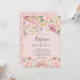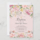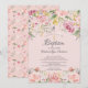 Belle florale rose avec feuilles d'or et invitation au baptême croisé avec un dos floral coordonné pour une touche spéciale.