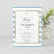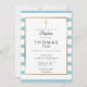 Invitation Baptême Croix Dorée Rayée de Bleu