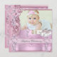 Ajouter Photo Damask Elegant Baptism Pink Cross Girl damask baptêtant Blanc Dentelle Bijoux Croix Papillon, Christening Baptism Invitation. Personnaliser avec vos propres détails