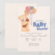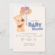 Invitation Baptême de ballon bébé ours en peluche rose tendre