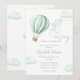 Cette charmante invitation pour une fête prénatale présente une montgolfière et des nuages mignons, ainsi qu'une typographie élégante. Conçu par Thisisnotme©