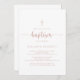 Cette invitation au baptême de calligraphie minimaliste en or rose est parfaite pour un baptême de bébé ou baptême rustique. Le design sobre et élégant présente une typographie de script classique et sophistiquée en or et blanc rose.