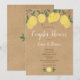 Avec son thème bohème rustique, ses citrons et son feuillage, cette invitation chic et botanique pour baptême de couple peut être personnalisée avec vos informations d'événement spéciales. Le verso comporte un monogramme avec les initiales du couple heureux. Conçu par Thisisnotme©