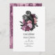 Célébrez votre histoire d'amour avec cette invitation de baptême de couple élégante et inspirée du gothique. Avec une illustration captivante de deux hiboux entourés de mauve sombre et de roses vintage avec une verdure luxuriante, ce design est parfait pour les événements d'Halloween ou les baptêmes à thème gothique. Personnalisez avec les noms, la date, le lieu et les détails du registre pour une célébration romantique et effrayante.