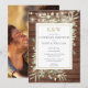 Caractérisé par de jolies guirlandes lumineuses et de délicates feuilles de feuillage aquarellées sur un fond en bois rustique, cette invitation chic pour un baptême de couple peut être personnalisée avec vos initiales de monogramme en or et les informations relatives au baptême de mariage, avec votre photo spéciale au verso. Conçue par Thisisnotme