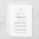 Elégante et intemporelle invitation au baptême pour petite fille Doté d'une simple croix rose et de vos détails dans une combinaison élégante de script et de police serif en lettres grises sophistiquées, Carte inversée à un rose pastel assorti. Autres couleurs disponibles La police et la couleur peuvent être facilement changées pour répondre à vos besoins, pour obtenir de l'aide ou une demande personnalisée, écrivez à citronelladesign@gmail.com ou contactez-nous par l'intermédiaire du magasin.