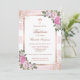 Invitation Baptême de fille florale rayée rose rose pâle