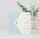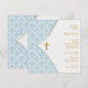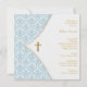 Invitation Baptême de garçon avec croix en damas bleu