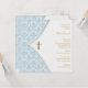 Invitation de baptême élégante en damas bleu. Cette belle invitation de baptême avec croix en damas bleu et or est facilement personnalisable pour votre événement en ajoutant vos détails d'événement, style de police, taille et couleur de police, ainsi que le libellé.