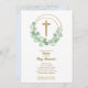 D'élégantes invitations au baptême comportent une croix de parties scintillant en faux or, une couronne de feuilles d'eucalyptus et vos détails en lettres chic sur l'avant et des points dorés sur le bleu pâle sur l'arrière. Parfait pour la première communion, le baptême ou le baptême de votre fils. Objets CORRESPONDANTS disponibles dans notre magasin.