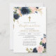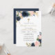 Invitation votre invité avec notre élégante et moderne invitation à la floraison de couleur marine florale de couleur aquarelle florale. Personnalisez avec vos détails de l'événement dans une mise en page simple et élégante police de style manuscrite.
