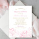 Une invitation de baptême de mariage chaleureuse et soignée présentant une esquisse de pivoine rose tendre dans le coin inférieur droit, associée à une typographie or et rose sur un fond blanc épuré. La combinaison du texte serif or et du script calligraphique avec l'illustration florale délicate crée un look luxueux et pourtant abordable. Entièrement modifiable pour votre célébration.