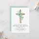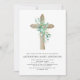 Sage Green Girl's Eucalyptus and Wooden Cross Botanical Greenery Aquarelle Christian Baptême Religieux Invitations.