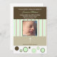 Une jolie carte de baptême photo non traditionnelle avec des bruns et des verts tendance. Vous pouvez modifier le libellé et les polices en cliquant sur le bouton "customiser" et en cliquant sur les barres de texte que vous souhaitez modifier. Plus d'articles de baptême disponibles ©www.artbyjess.