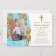 Invitation Baptême d'or bleu 1er anniversaire Texte photo