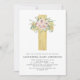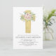 Rose rose rose et sauge vert de la fille et Eucalyptus - Gold Foil Cross Botanical Greenery Aquarelle Baptême religieux chrétien Invitations.