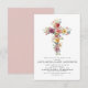 Rose rose rose et sauge vert de la fille et Eucalyptus - Gold Foil Cross Botanical Greenery Aquarelle Baptême religieux chrétien Invitations.