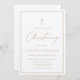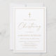 Célébrez le jour spécial de votre enfant avec cette invitation de baptême à l'écriture élégante dorée intemporelle. Avec une typographie délicate, un design minimaliste et un accent de croix en or doux, cette invitation apporte une touche de grâce et de sophistication à votre célébration.