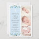 Esta invitación de bautismo con flores azules en español para niños tiene espacio por 4 fotos de su bebé y presenta hermosos ramos de flores de acuarela con végétación botánica. El frente inclut 3 fotos, una caligrafía elegante y una simple cruz cristiana y los detalles de su evento escritos en una tipografía serif vintage en un tono súper elegante de gris carbón. En la parte de atrás hay espacio para otra foto, que está enmarcada por más flores de acuarela, végétación botánica y una cruz, así como un versículo de la biblia, que puedes cambiar a lo que prefieras. El révérso de la invitación puede enmarcarse después de su evento y guardarse como un recuerdo special de la ocasión. Diseñado como parte de mi elegante colección Blue Powder para bebés y niños, asegúrese de explar los otros artículos de la suite para crear un estilo elegante y coordinado para su bautizo. Si necesita ayuda para personalizar esta invitación o desea que cree elementos adicionales que coïncidan, comuníquese conmigo (Dawn) en admin@albamarie.com. ¡Estaré feliz de ayudar ! Para cambiar las fuentes o los colores o cambiar la posición de los cuadros de texto, desplácese más allá de estos cuadros de texto y haga clic en "Edit using design tool". Si necesita ayuda adicional para ajustar esta plantilla, aproveche el servicio gratuito de Zazzle en https://www.zazzle.com/live o comuníquese conmigo a través del sistema de mensajería de Zazzle. Tenga en cuenta que yo creo los malades, pero Zazzle los imprime y los envía desde sus installaciones de producción, por lo que si hay algún problema con su pedido, comuníquese con su servicio de atención al cliente al 1-888-892-9953 o https:// www.zazzle.com/about/ask. Cette invitation au baptême espagnol bleu, floral, multiphoto pour les garçons présente de beaux bouquets de fleurs d'aquarelle à la végétation botanique. Le devant comprend 3 photos, un script de calligraphie élégant et une simple croix chrétienne et les détails de votre événement écrits dans une typographie serif vintage dans une teinte super chic de gris fusain. Au fond, une autre photo, encadrée de fleurs d'aquarelle, de verdure botanique et d'une croix, ainsi qu'un verset biblique, vous pouvez changer à tout ce que vous préférez. Le dos de l'invitation peut être encadré après votre événement et conservé comme un souvenir spécial de l'occasion. Conçu dans le cadre de ma collection élégante Blue Powder pour bébés et enfants, ne manquez pas de parcourir les autres éléments de la suite pour créer un look chic et coordonné pour votre baptême. Si vous avez besoin d'aide pour customiser cette invitation ou si vous souhaitez que je crée des objets supplémentaires, correspondants, veuillez me contacter (Dawn) à l'adresse admin@albamarie.com. Je serais heureux d'aider !