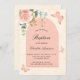 Invitation Baptême eucalyptus rousse papillons roses floraux