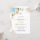 Invitation Baptême eucalyptus vert bleu or fleuri garçon
