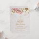 Cette élégante invitation de baptême floral comporte, dans sa partie supérieure, des orchidées roses et blanches et une croix dorée en dessous, au-dessus du texte, sur un fond en marbre blanc. Le nom du bébé est écrit dans une police calligraphique élégante. Tout le texte est d'une couleur jaune doré.