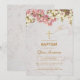 Invitation Baptême Fille Fleurs Orchidées Roses Croix Dorée M