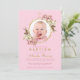 Invitation Baptême Fille Photo Rose Orchidées Floral Géométri