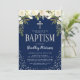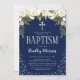 Invitation Baptême Fleur Bleu Argent Garçon Christening