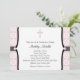Faire-part de baptême rose et noir élégant. Cette invitation de baptême, de christening, de première communion, de confirmation ou d'une autre cérémonie religieuse avec une fleur rose moderne et douce est facilement personnalisable pour votre événement en ajoutant vos détails d'événement, style de police, taille et couleur de police, et le libellé. Veuillez noter que toutes les conceptions de cartes et d'invitations que vous trouverez sur Zazzle sont des graphiques imprimés sans véritables bijoux, rubans, reliefs, gaufrures ou pièces ou éléments ajoutés.