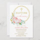 Invitation Baptême floral rose et premier Invi d'anniversaire