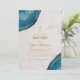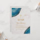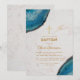 Cette élégante invitation de baptême, recommandée pour le baptême d'un garçon, comporte des géodes d'agate bleue dans les coins supérieur gauche et inférieur droit. Le fond est en marbre blanc.