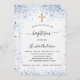 Invitation Baptême garçon bleu blanc croix d'or luxe