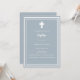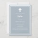Arrière - plan bleu Dusty, décoré d'un cadre blanc, et d'une croix blanche Personnalisez et ajoutez le nom et les détails. Texte blanc.