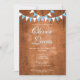 Cette jolie invitation de baptême, de christening ou de première communion rustique présente un fond en bois rustique vintage, des guirlandes bleues et blanches, et une superbe calligraphie script avec une ombre portée bleue. Le verso présente des rangées de guirlandes bleues et blanches sur un fond en bois rustique vintage.