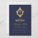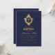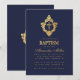 Invitation Baptême garçon croix à armoiries en faux or bleu m