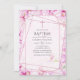 Invitation Baptême géométrique rose de Magnolia d'or et de ro